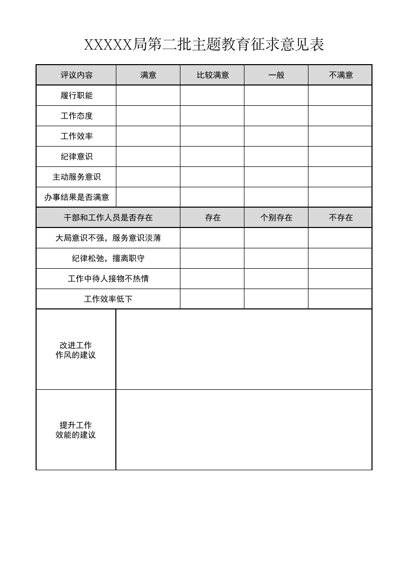 首页办公表格XXXXX局第二批主题教育征求意见表