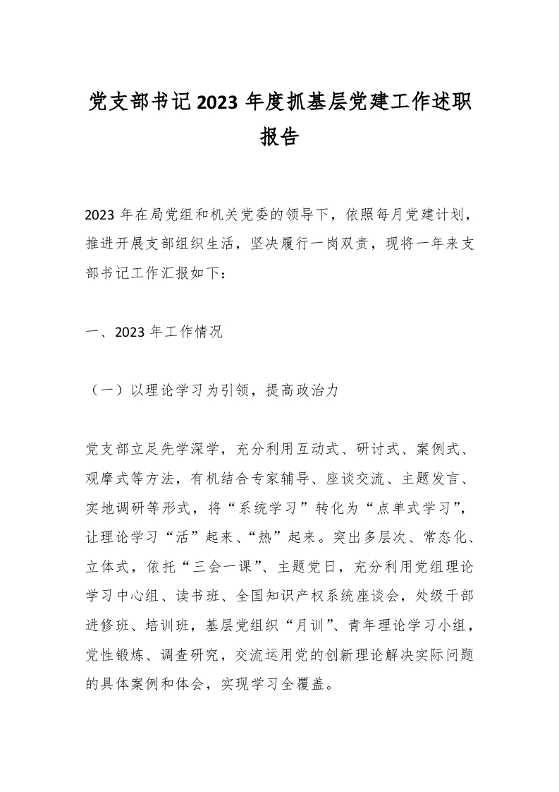 首页精选范文党支部书记2023年度抓基层党建工作述职报告