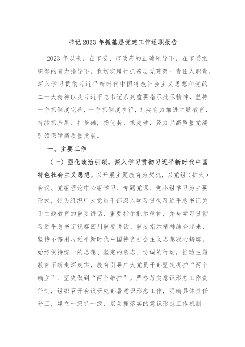 首页讲课讲稿书记2023年抓基层党建工作述职报告