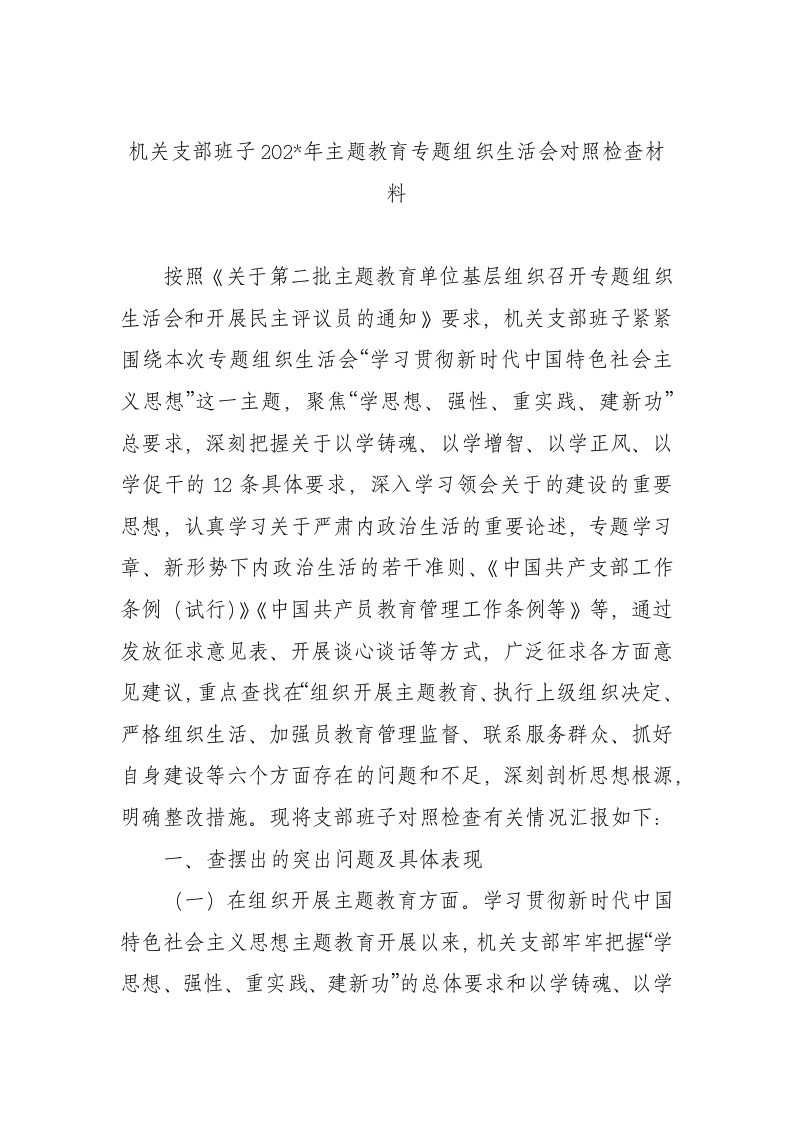 首页材料汇编机关党支部班子2023年主题教育专题组织生活会对照检查材料 (2)