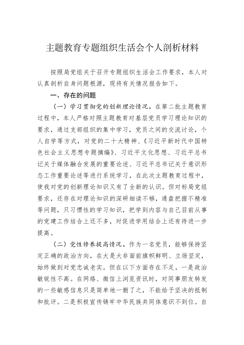 首页材料汇编主题教育专题组织生活会个人剖析材料