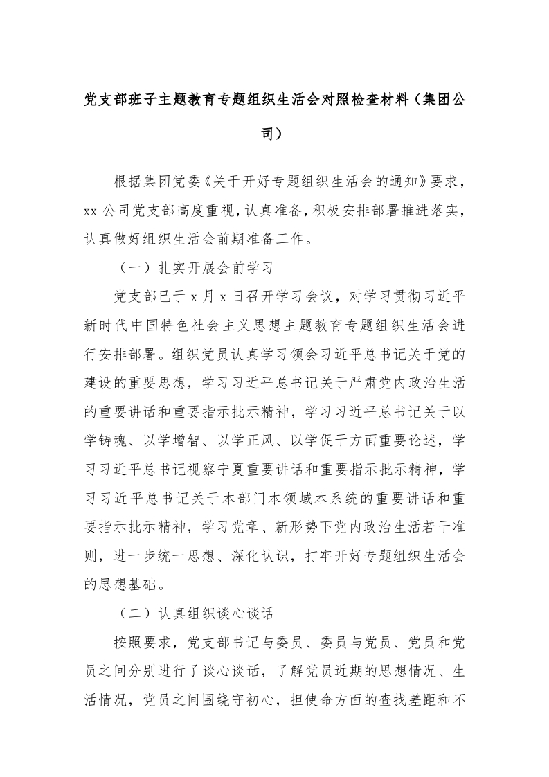 党支部班子主题教育专题组织生活会对照检查材料(集团公司)