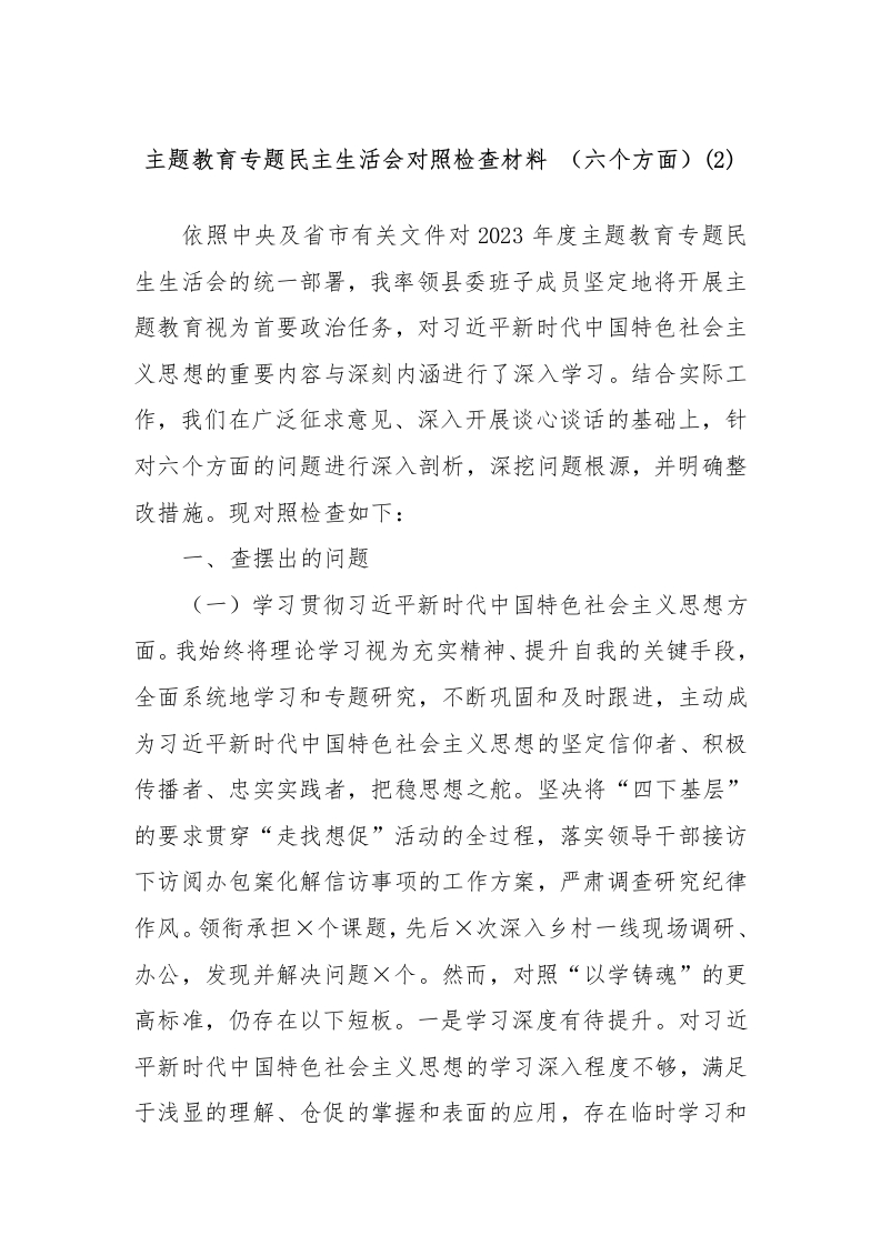 主题教育专题民主生活会对照检查材料 (六个方面)(2)