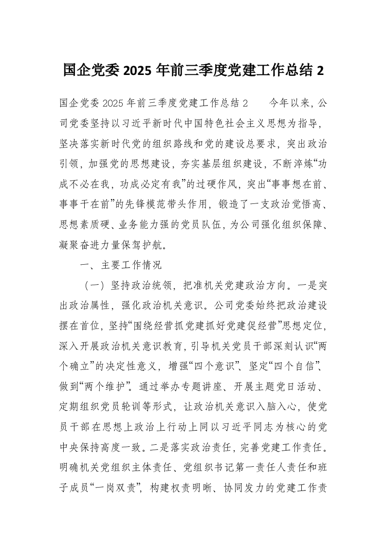 首页工作文档国企党委2025年前三季度党建工作总结2