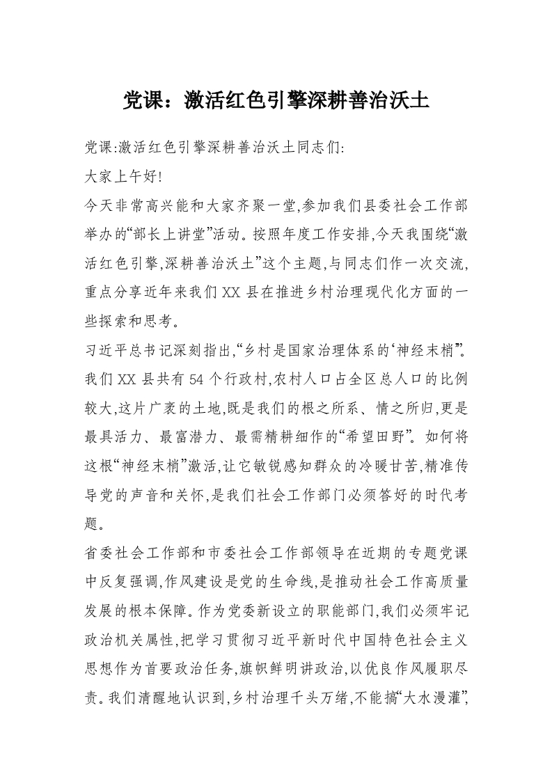 首页工作文档党课:激活红色引擎深耕善治沃土