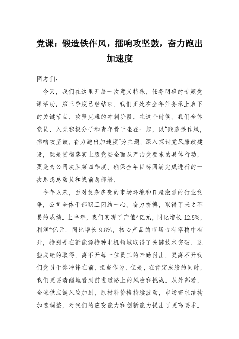 党课:锻造铁作风,擂响攻坚鼓,奋力跑出加速度