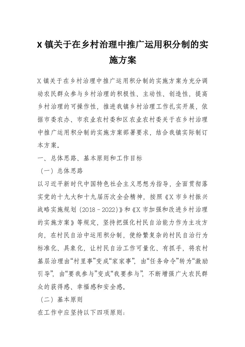 X镇关于在乡村治理中推广运用积分制的实施方案