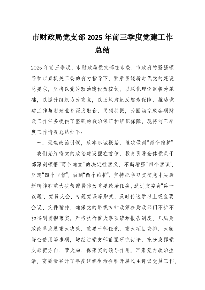 首页学习提升市财政局党支部2025年前三季度党建工作总结