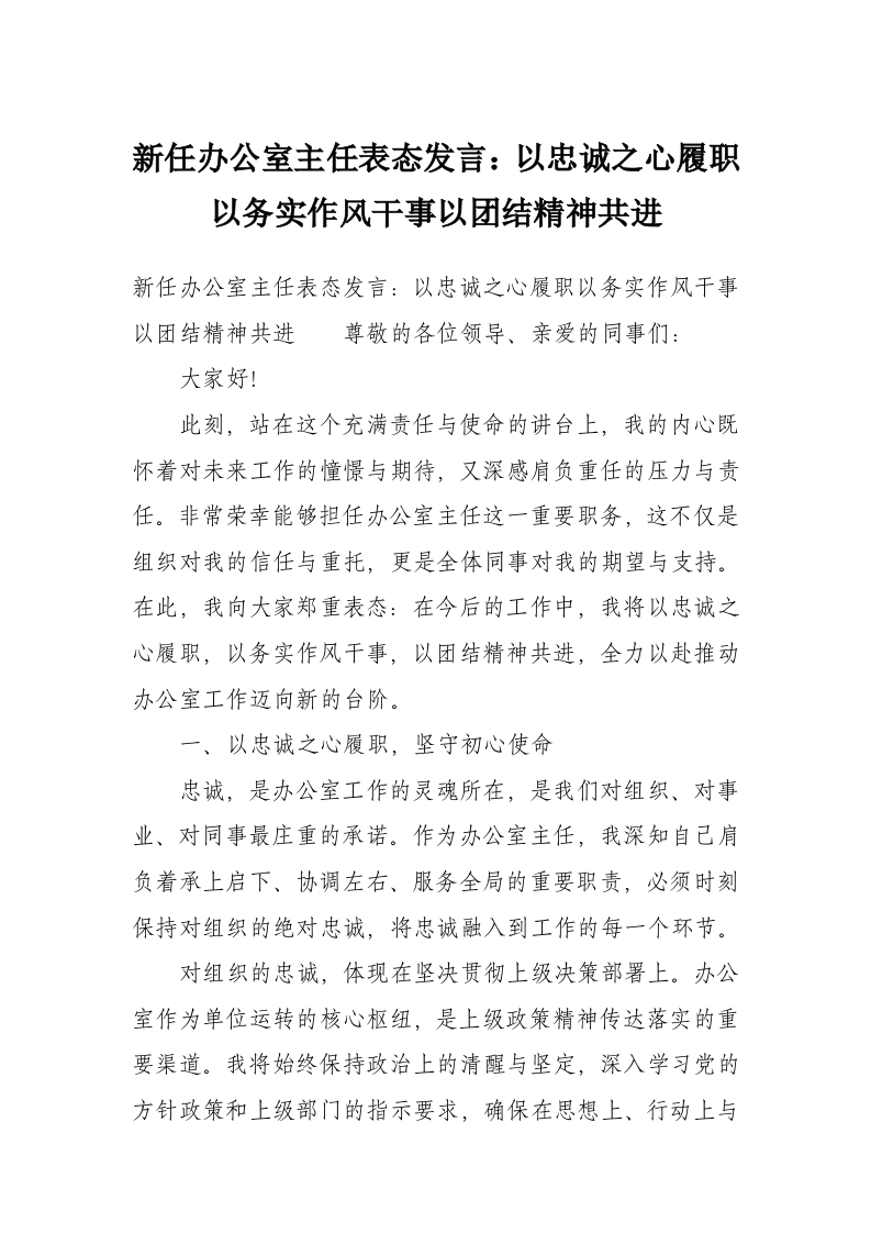 首页学习提升新任办公室主任表态发言:以忠诚之心履职以务实作风干事以团结精神共进