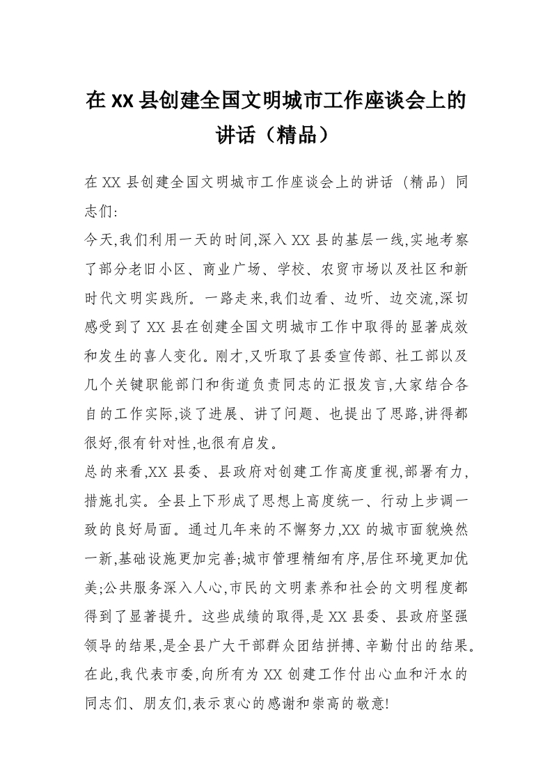 在XX县创建全国文明城市工作座谈会上的讲话(精品)