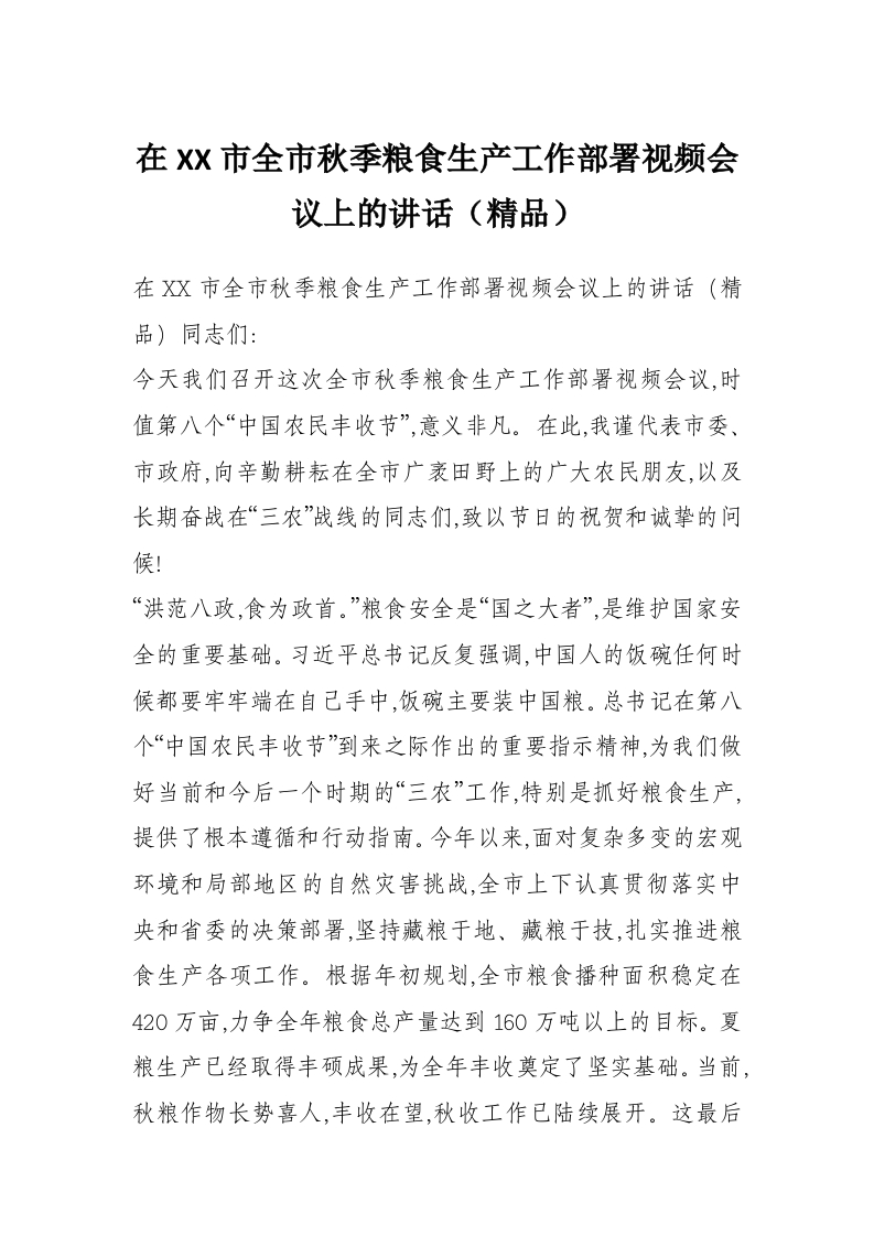 在XX市全市秋季粮食生产工作部署视频会议上的讲话(精品)