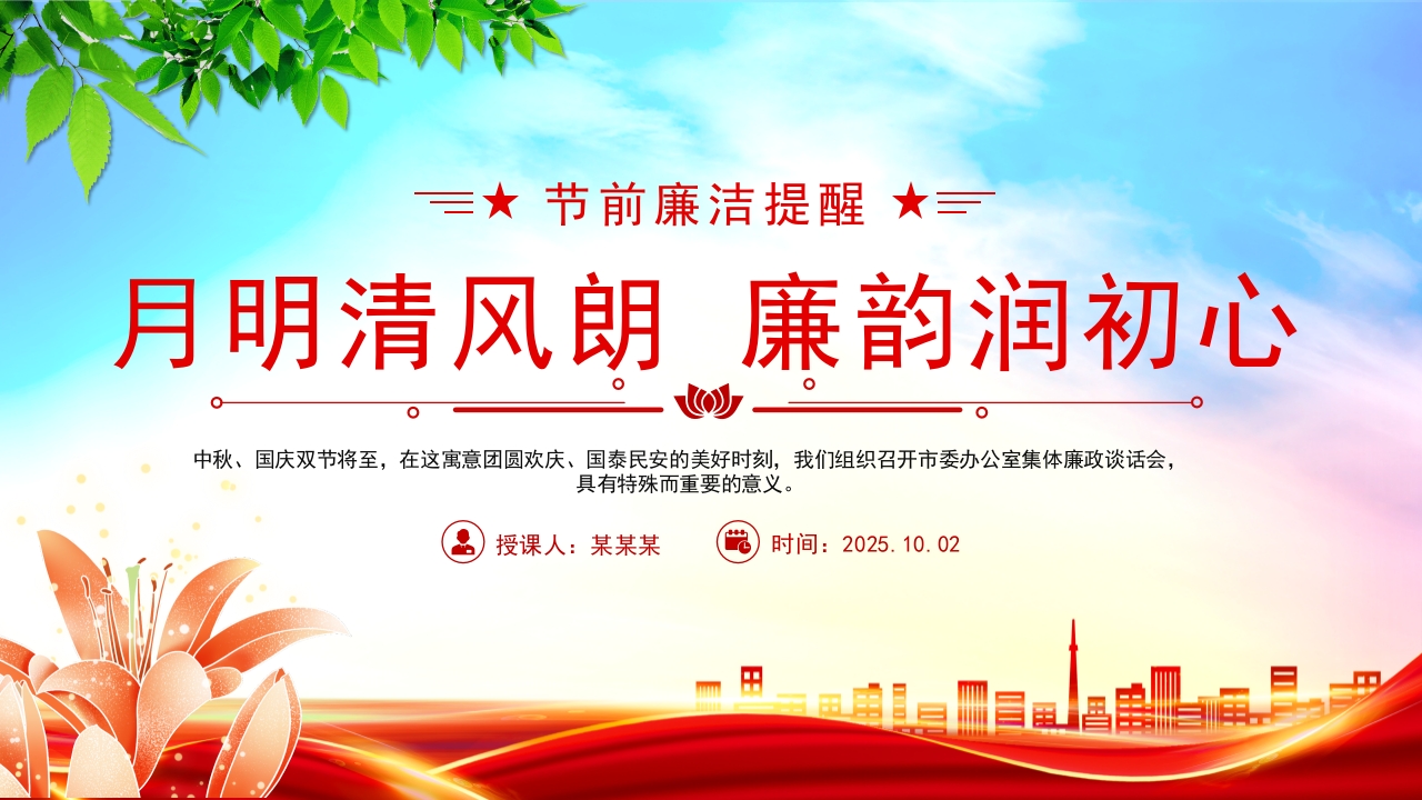 节前廉洁提醒PPT月明清风朗廉韵润初心微党课