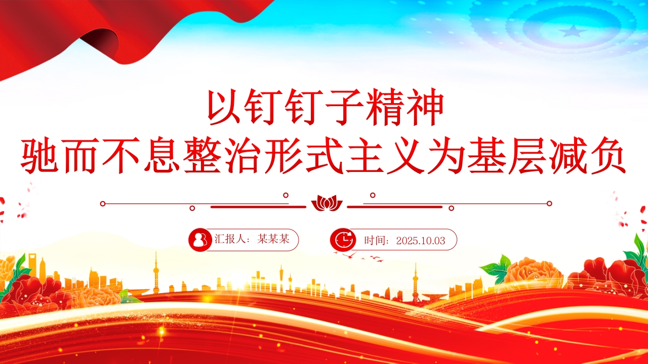 首页PPT模板党政风以钉钉子精神驰而不息整治形式主义为基层减负PPT课件