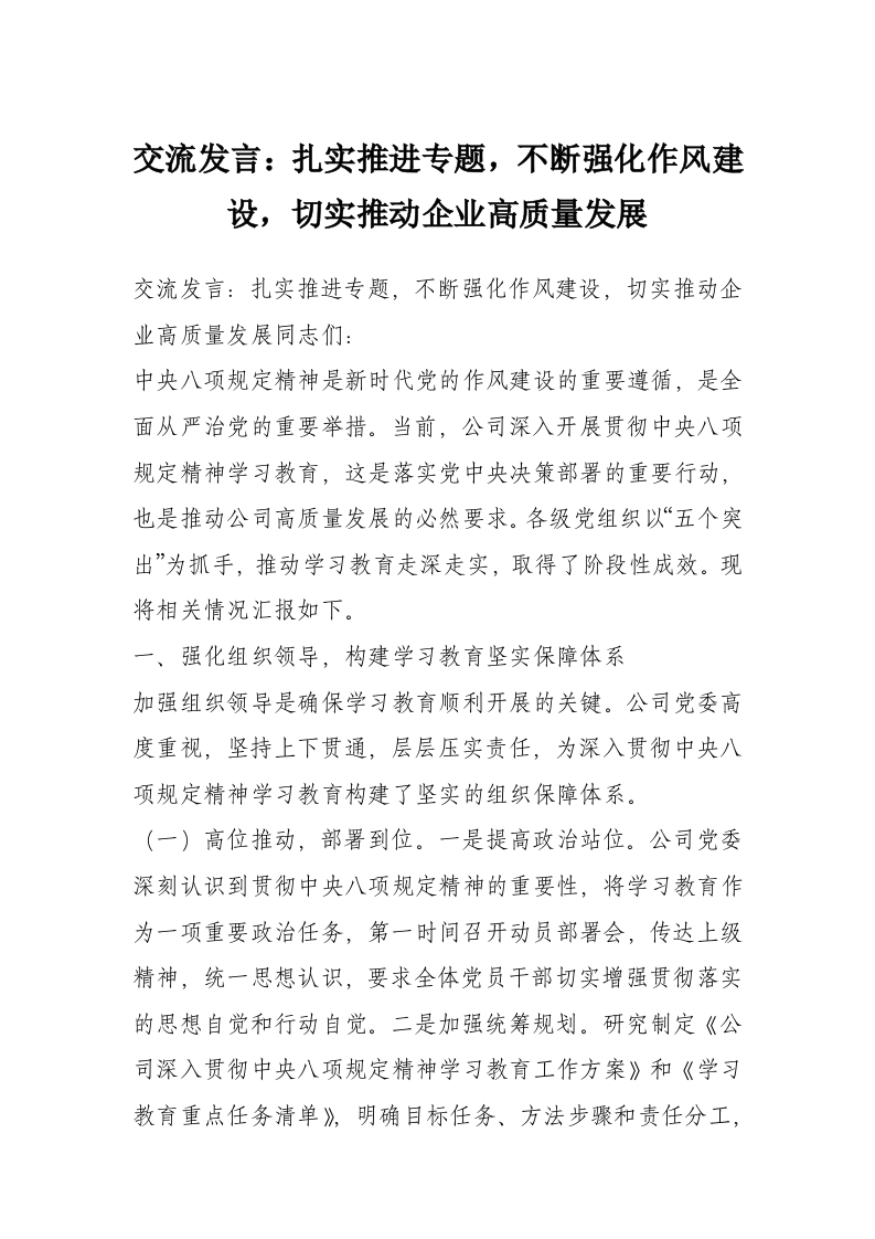 首页精选范文交流发言:扎实推进专题,不断强化作风建设,切实推动企业高质量发展