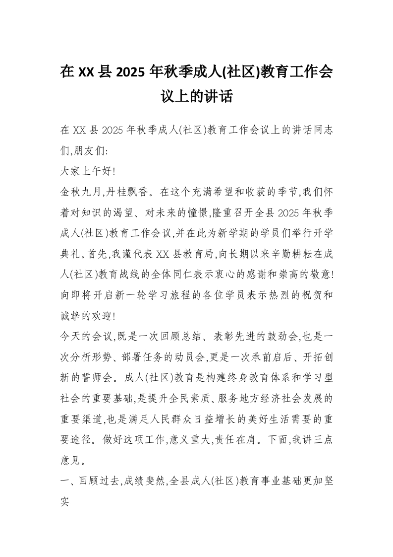 在XX县2025年秋季成人(社区)教育工作会议上的讲话