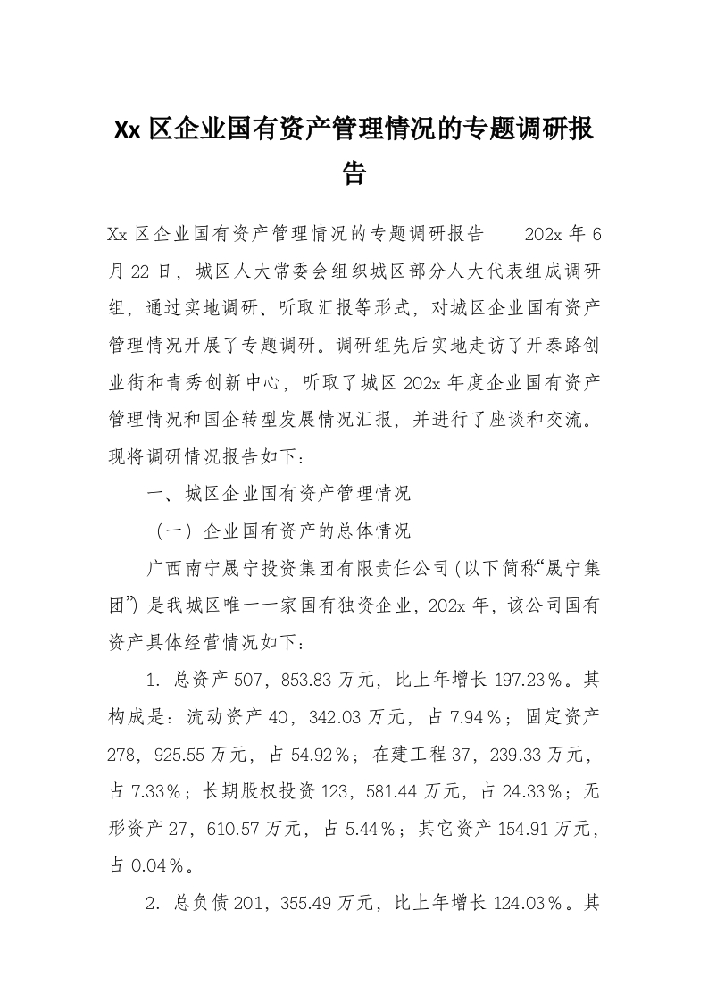 Xx区企业国有资产管理情况的专题调研报告