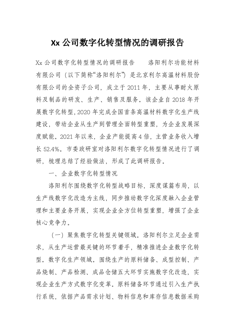 Xx公司数字化转型情况的调研报告