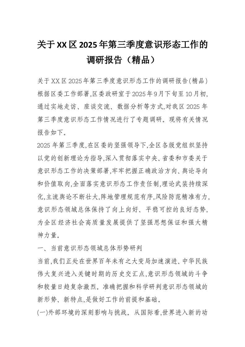 关于XX区2025年第三季度意识形态工作的调研报告(精品)