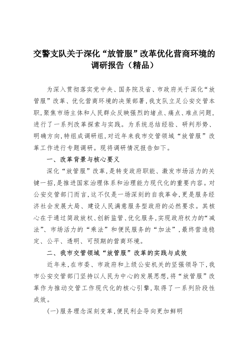 交警支队关于深化“放管服”改革优化营商环境的调研报告(精品)