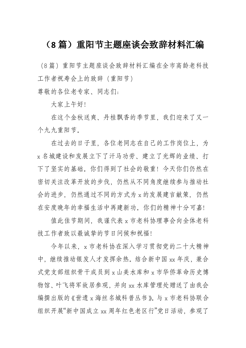 首页讲课讲稿(8篇)重阳节主题座谈会致辞材料汇编