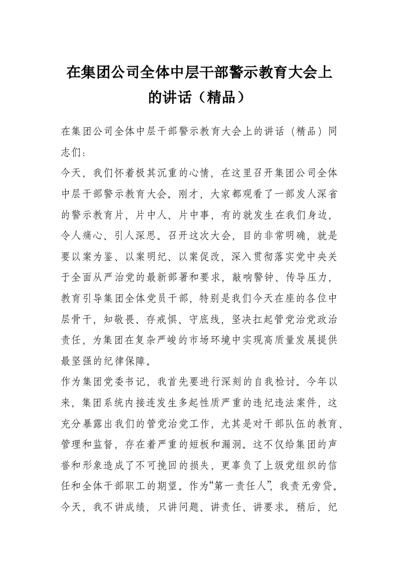 在集团公司全体中层干部警示教育大会上的讲话(精品)