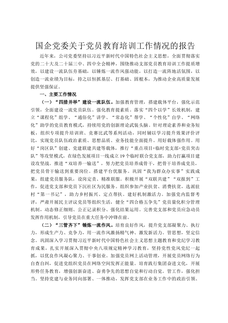 首页讲课讲稿国企党委关于党员教育培训工作情况的报告