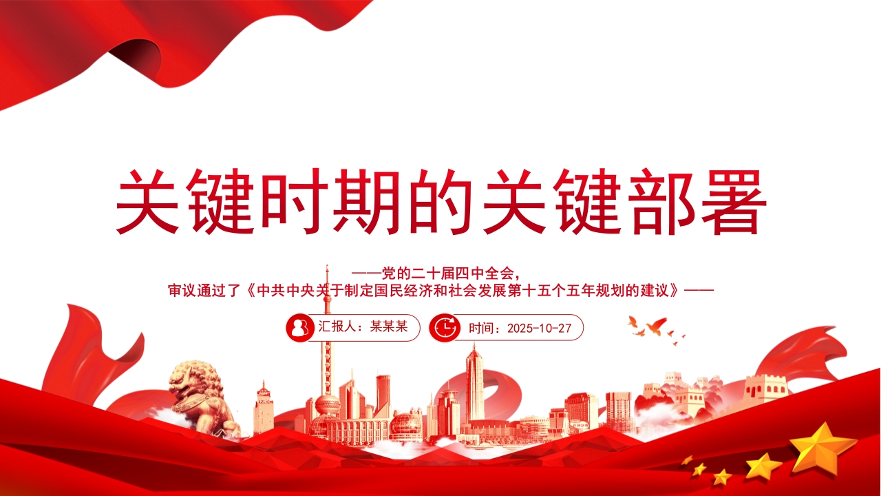 红色简洁关键时期的关键部署PPT党的二十届四中***主题党课课件