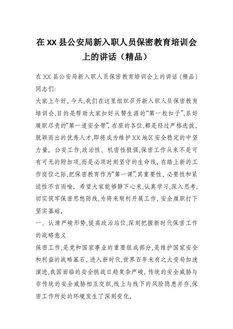 在XX县公安局新入职人员保密教育培训会上的讲话(精品)