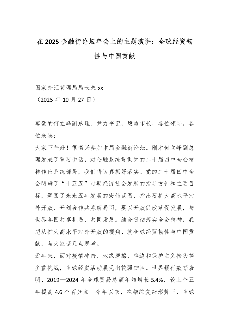 在2025金融街论坛年会上的主题演讲:全球经贸韧性与中国贡献_副本