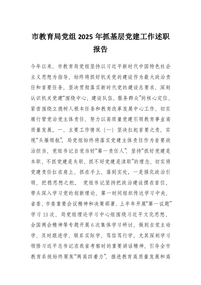 首页学习提升市教育局党组2025年抓基层党建工作述职报告