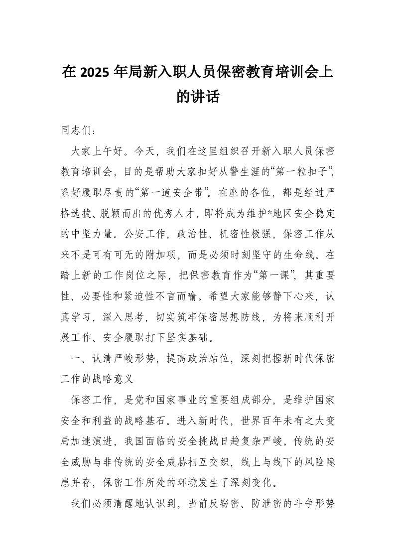 首页写作素材在2025年局新入职人员保密教育培训会上的讲话