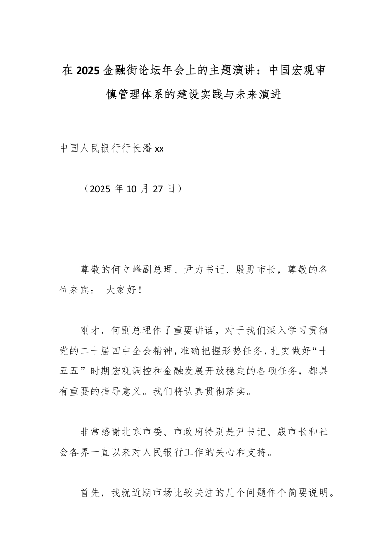 在2025金融街论坛年会上的主题演讲:中国宏观审慎管理体系的建设实践与未来演进_副本