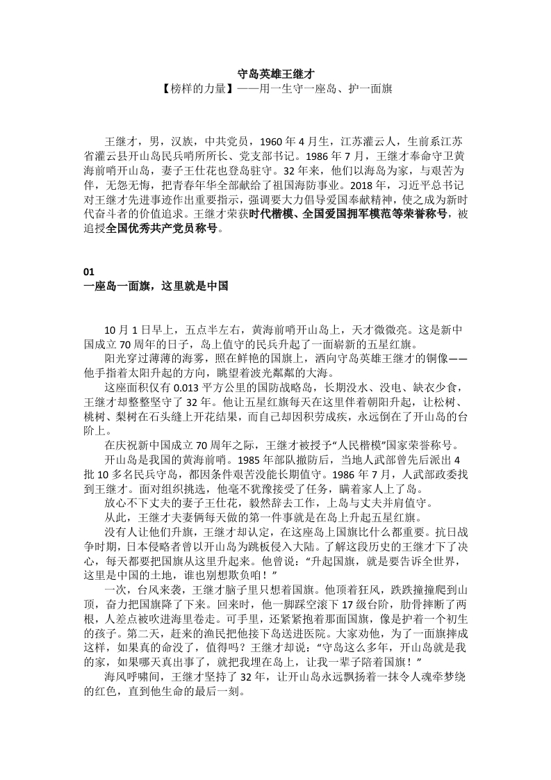 首页学习提升学习守岛英雄王继才PPT榜样的力量主题党课(讲稿)