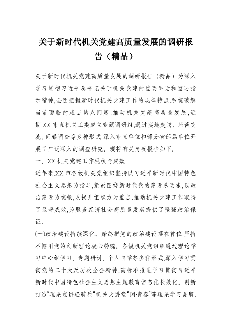 首页精选范文关于新时代机关党建高质量发展的调研报告(精品)