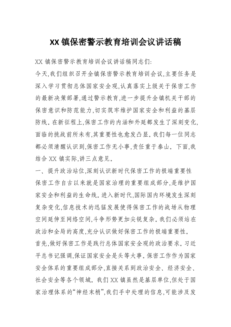 首页精选范文XX镇保密警示教育培训会议讲话稿