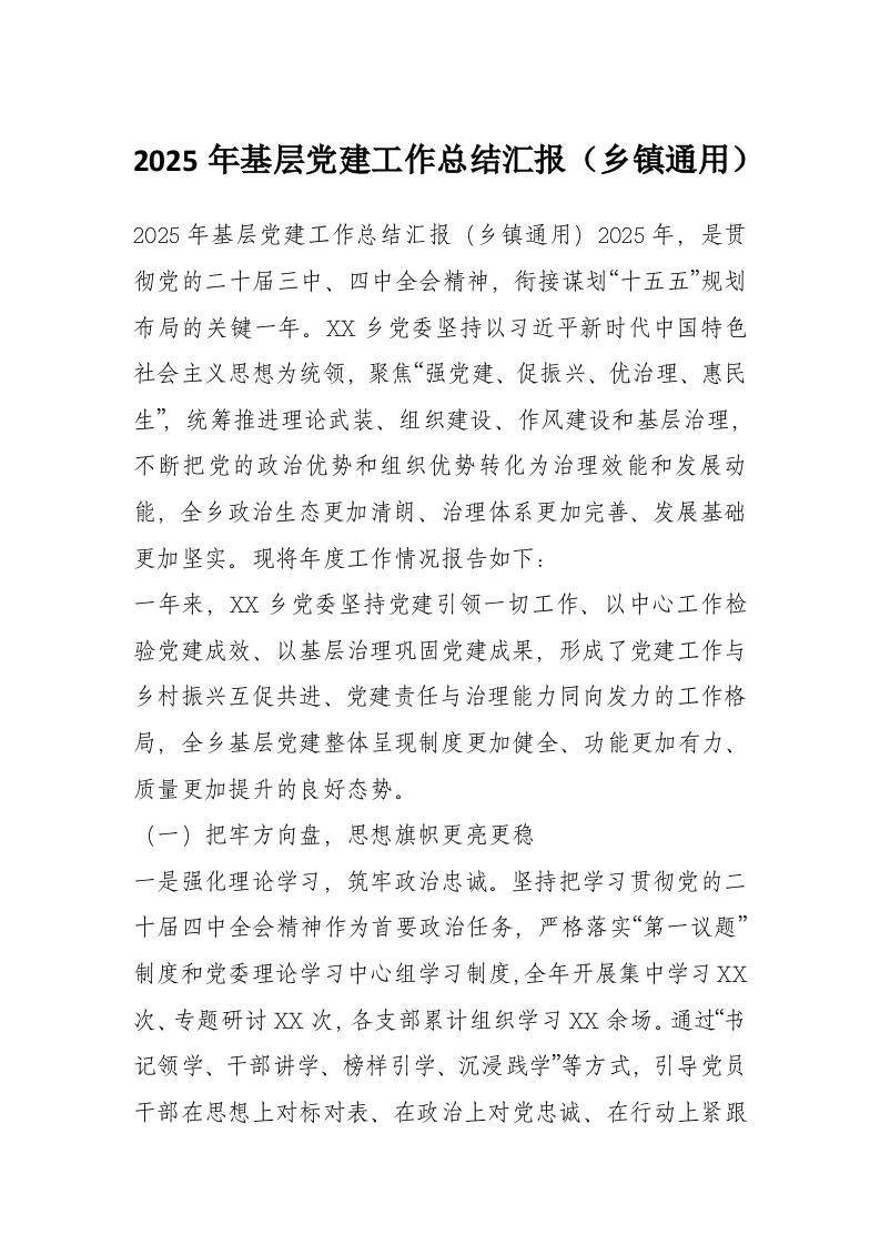 首页讲课讲稿2025年基层党建工作总结汇报(乡镇通用)