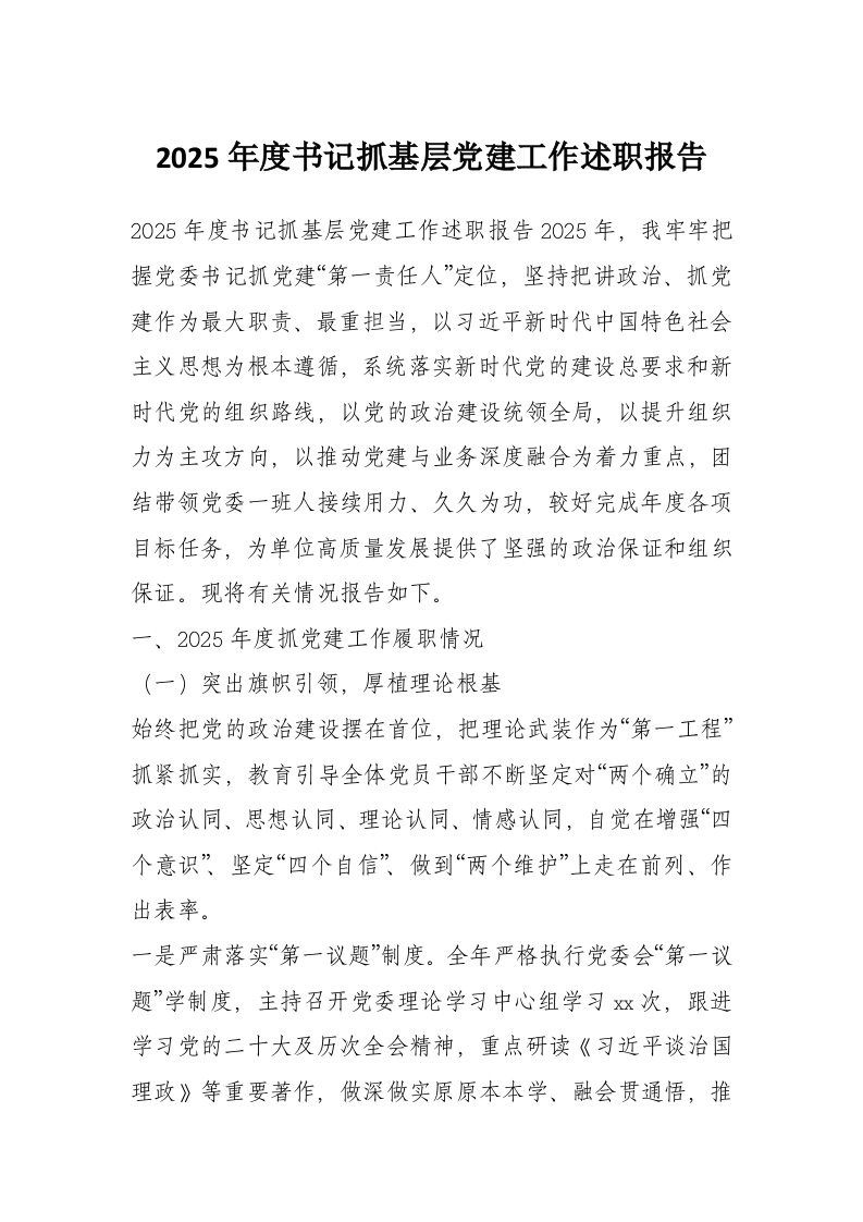 首页讲课讲稿2025年度书记抓基层党建工作述职报告