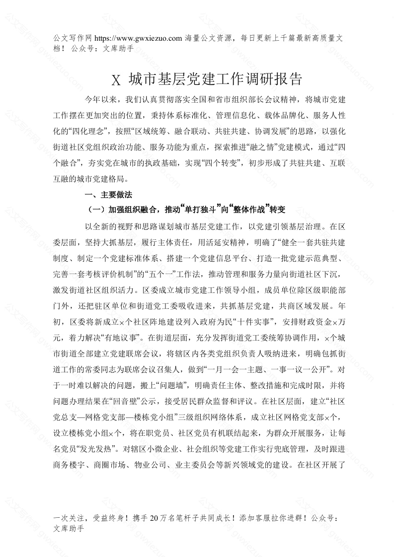 首页办公表格X城市基层党建工作调研报告