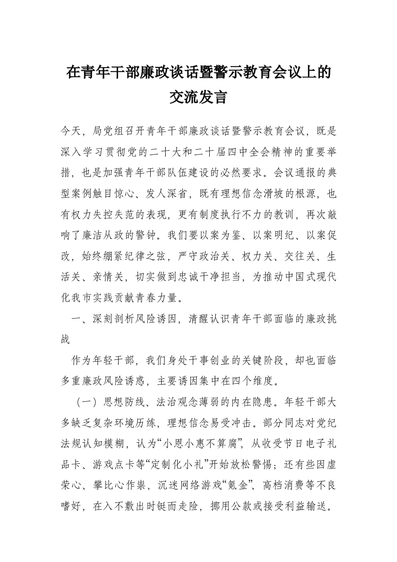 在青年干部廉政谈话暨警示教育会议上的交流发言