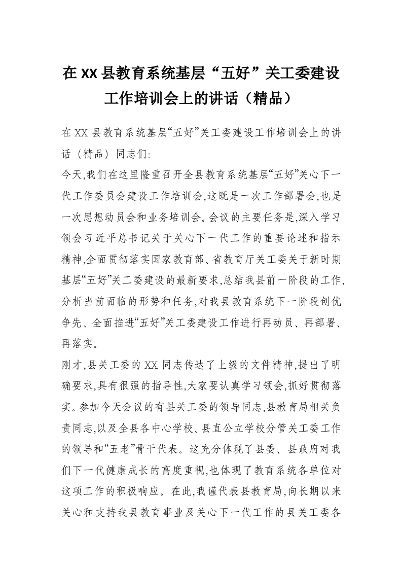 在XX县教育系统基层“五好”关工委建设工作培训会上的讲话(精品)