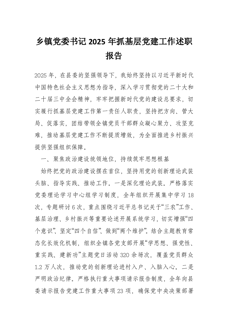 首页学习提升乡镇党委书记2025年抓基层党建工作述职报告