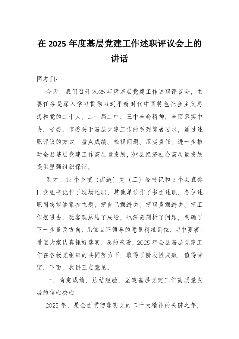 首页材料汇编在2025年度基层党建工作述职评议会上的讲话