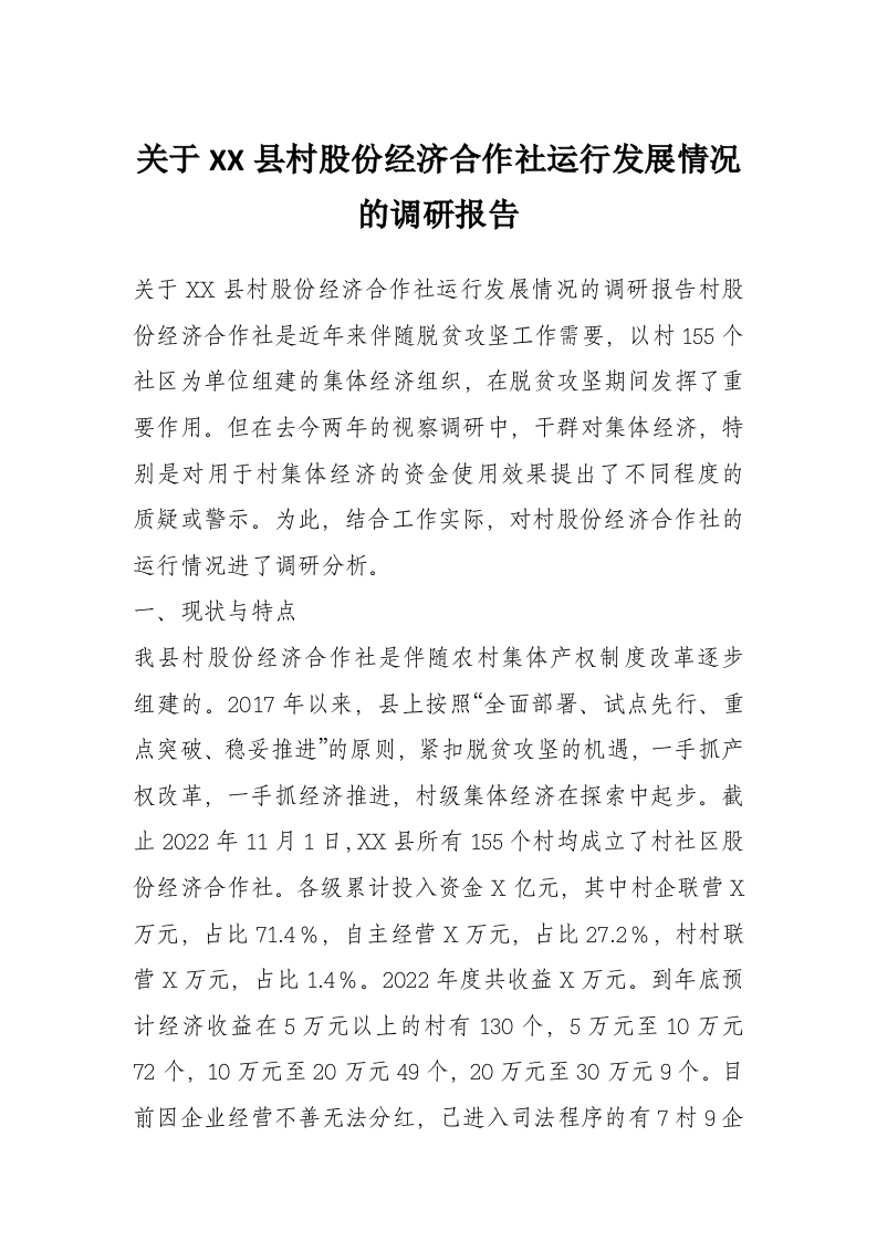 首页工作文档关于XX县村股份经济合作社运行发展情况的调研报告