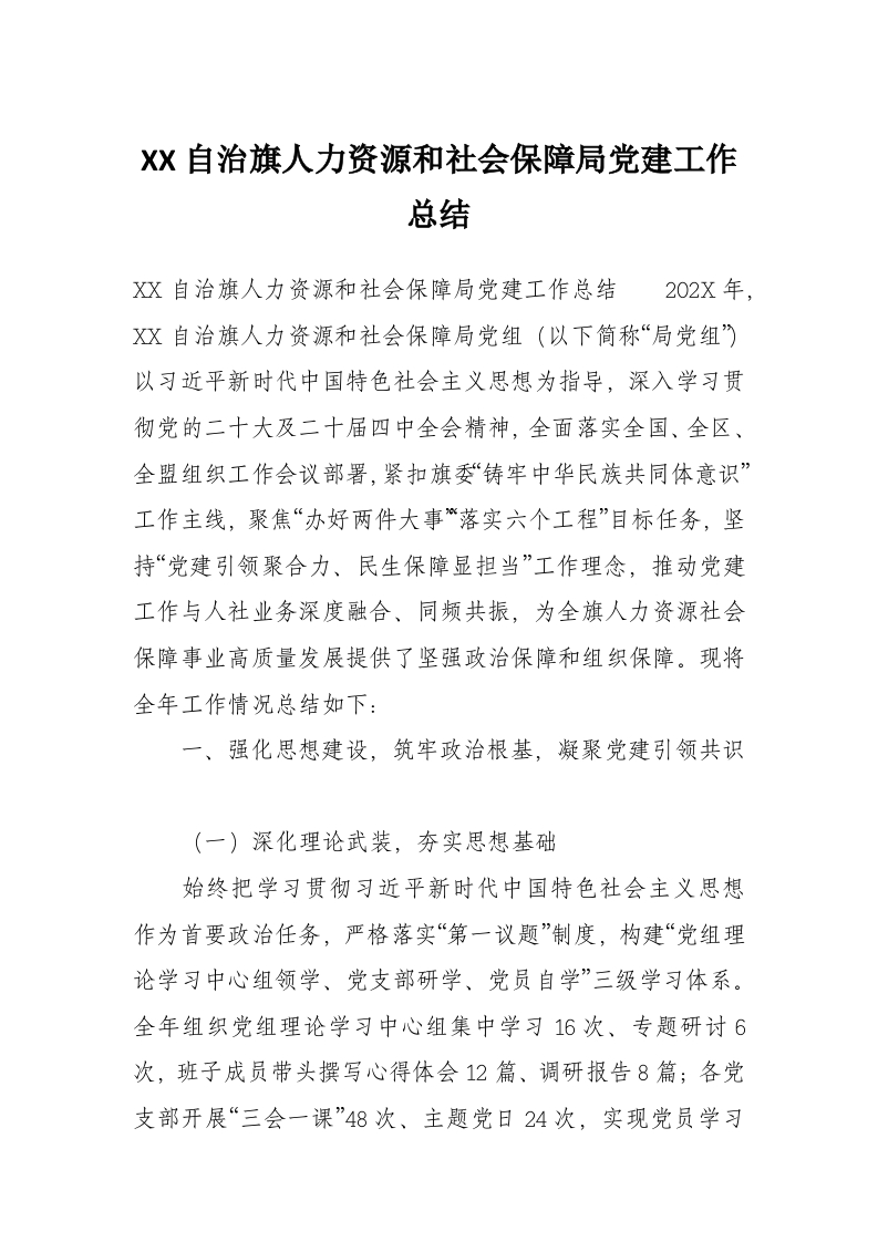 首页学习提升XX自治旗人力资源和社会保障局党建工作总结