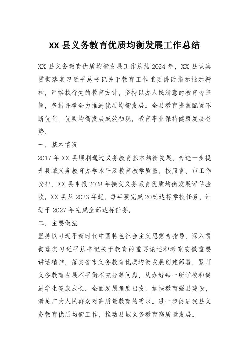 首页学习提升XX县义务教育优质均衡发展工作总结