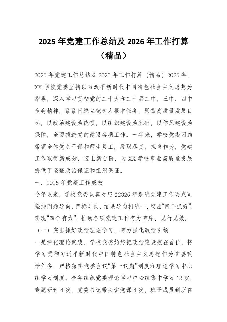 2025年党建工作总结及2026年工作打算(精品)