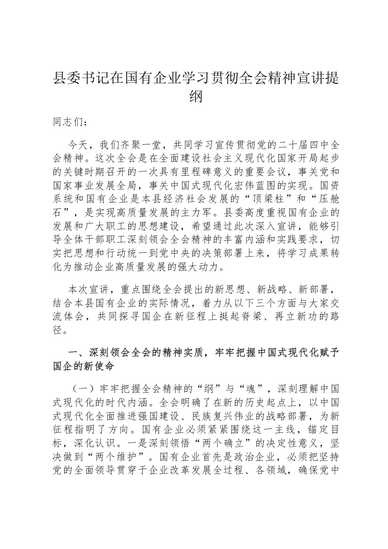 县委书记在国有企业学习贯彻***精神宣讲提纲