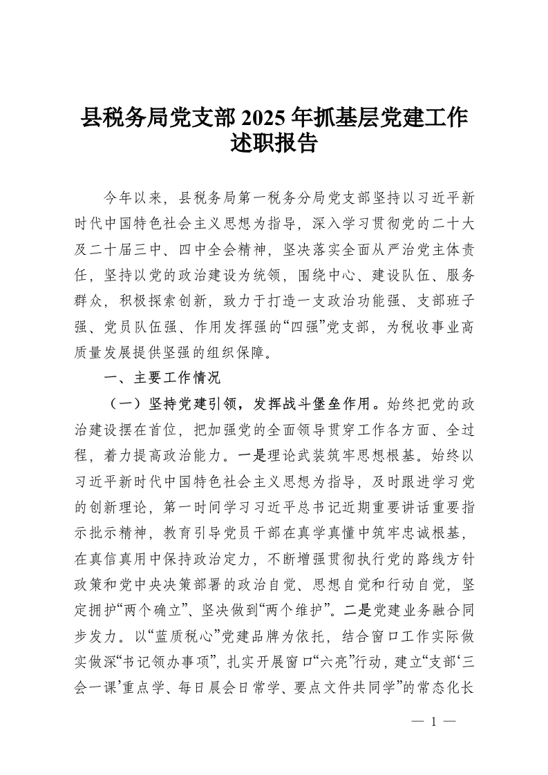 县税务局党支部2025年抓基层党建工作述职报告
