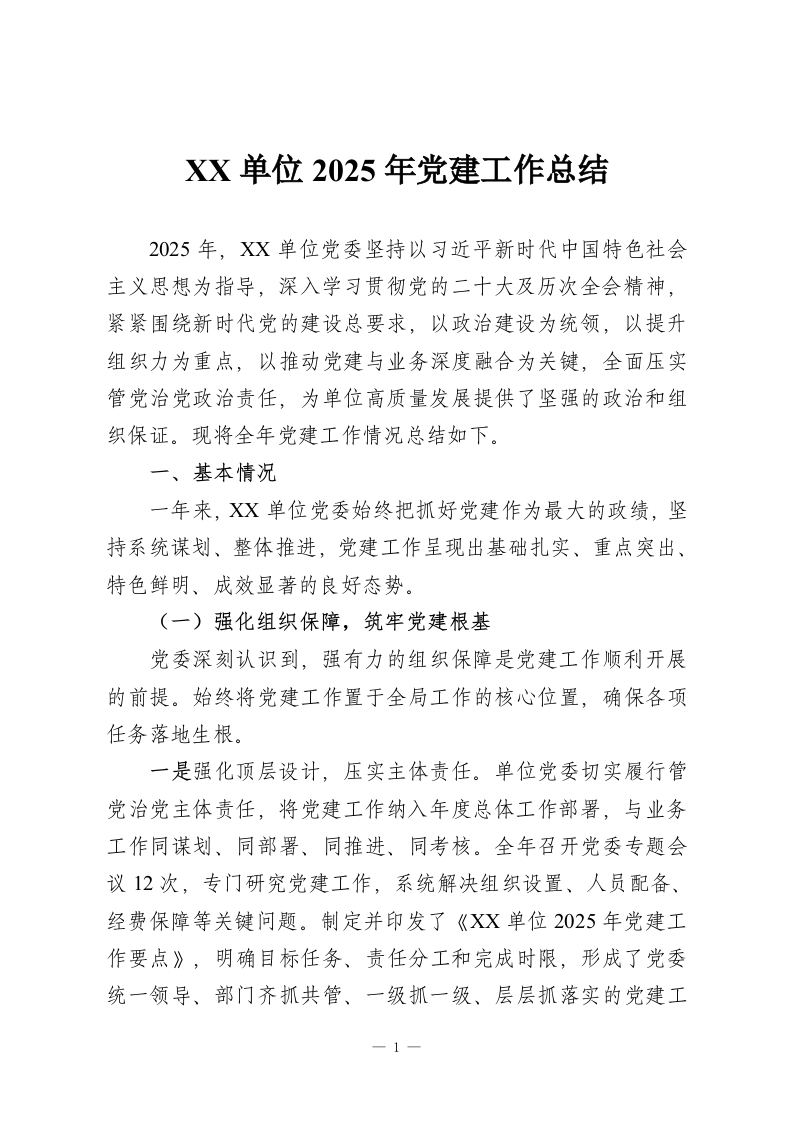 XX单位2025年党建工作总结
