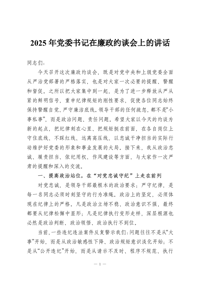 首页精选范文2025年党委书记在廉政约谈会上的讲话